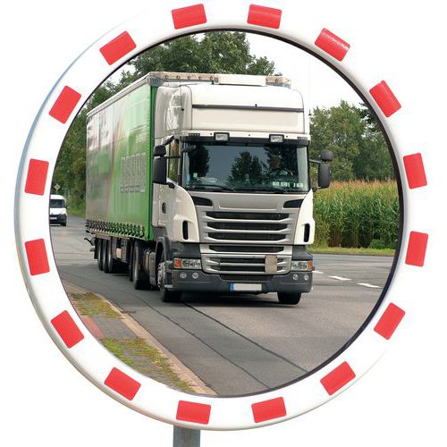 Straßenspiegel aus Polykarbonat mit rot-weißem Rahmen - Dan Mirror, Überwachungsradius: 15 m, Form: Rund
