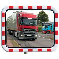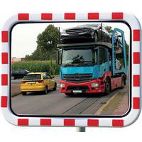 Straßenspiegel aus Polykarbonat mit rot-weißem Rahmen - Dan Mirror, Überwachungsradius: 27 m, Form: Rechteck