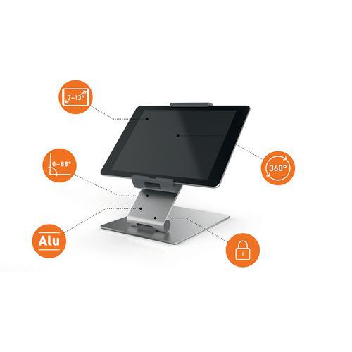 | Produktname | Tablethalter, Tischausführung - Durable, Max. Belastung: 1 kg, Werkstoff: Aluminium, Höhe: 242 mm |