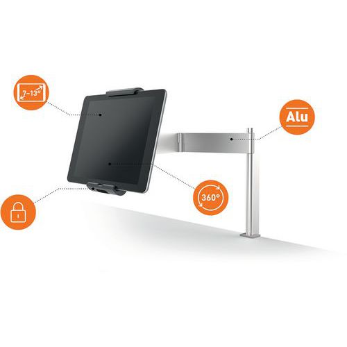 | Produktname | Tablethalter, Tischausführung mit Schwenkarm - Durable, Max. Belastung: 1 kg, Werkstoff: Aluminium |
