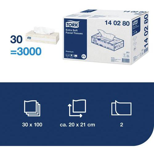 | Produktname | Taschentuchbox, Anzahl Blätter/Packung: 100, Typ: Taschentuch, Länge Blatt: 22.5 cm, Breite Blatt: 11.5 cm |