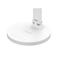 Tech-Schreibtischlampe Atias mit verstellbarem und klappbarem Lampenarm Mit Timer-Funktion für den automatischen Wechsel in den Standby-Modus Kabelloses Induktionsladegerät (5 W) Zusätzlicher USB-Anschluss auf der Rückseite Einstellung der Farbtemperatur und Helligkeit möglich