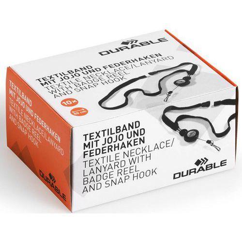 | Produktname | Textilband mit Jojo, Farbe: Schwarz, Längen: 801 mm, Werkstoff: Tuch, Nutzbare Breite: 44 cm |