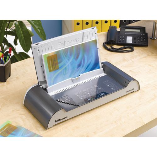| Produktname | Thermobindegerät Fellowes, Längen: 24 cm, Breite: 53 cm, Höhe: 10 cm, Bindekapazität (Anzahl Seiten): 300 |