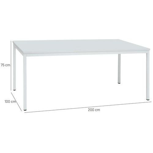 | Produktname | Tisch Basic-Line, Längen: 200 cm, Tiefe: 100 cm, Material Platte: Melamin, Gestellfarbe: Hellgrau |