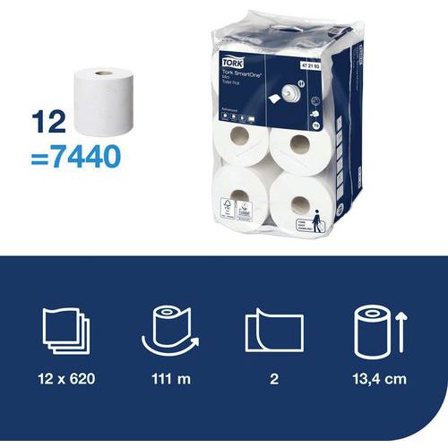 | Produktname | Toilettenpapier Tork, Rolle, Einzelblattausgabe, SmartOne, Anzahl Schichten: 2, Farbe: Weiß |