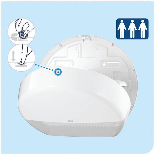 | Produktname | Toilettenpapierspender Tork T1 - Maxi Jumbo, Farbe: Weiß, Höhe: 36.8 cm, Breite: 13.9 cm, Tiefe: 44.4 cm |