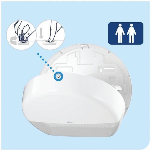 | Produktname | Toilettenpapierspender Tork T2 - Mini Jumbo, Farbe: Weiß, Höhe: 28.4 cm, Breite: 13.9 cm, Tiefe: 35.2 cm |