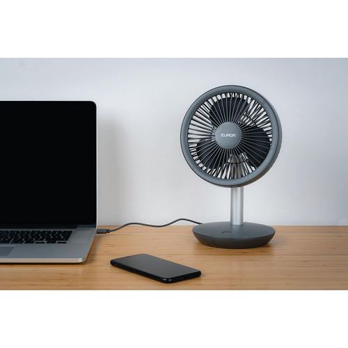 Tragbarer Akku-Ventilator - USB-Ladegerät - Eurom, Höhe: 29.2 cm, Energie: 5 W, Farbe: Grau