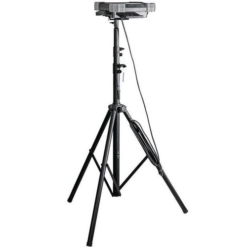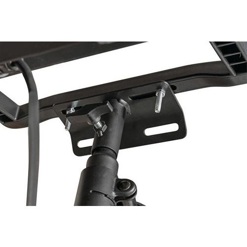 - Umklappbarer und verstellbarer Haltebügel zum Aufstellen oder Befestigen des Scheinwerfers auf einem Brennenstuhl-Stativ