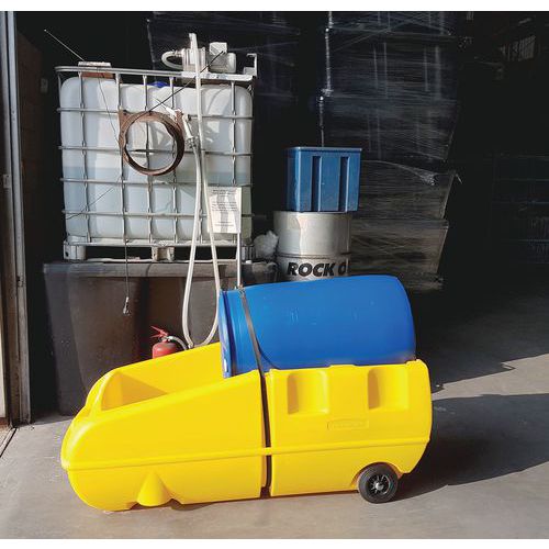 | Produktname | Tragwagen für Fässer, Inhalt Auffangbehälter: 250 L, Farbe: Gelb, Gesamtlänge: 1740 mm, Gesamtbreite: 815 mm |