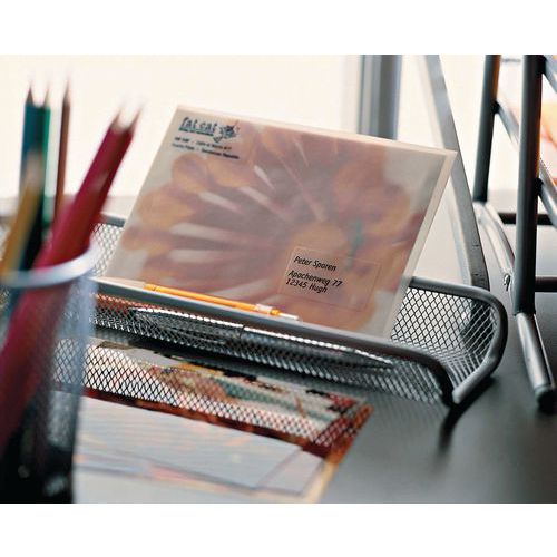 - Sobald das Etikett auf den Umschlag aufgeklebt wird, ist nur noch der Text sichtbar.