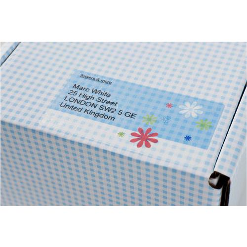 - Transparentes Etikett: Nach dem Aufkleben auf den Umschlag bleibt nur der Text sichtbar.
