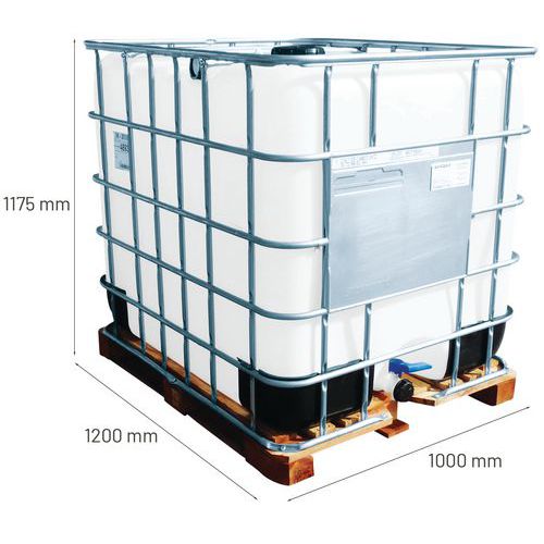 | Produktname | Transportbehälter 1000 L, renoviert und zugelassen + Palette - Manutan Expert, Gesamtinhalt: 1000 L |