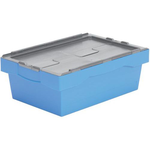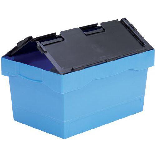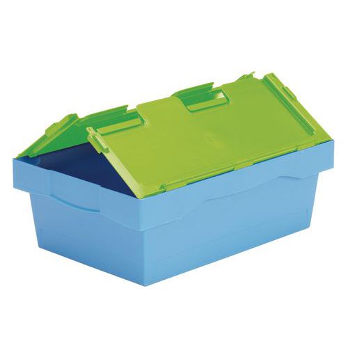 Einfache Identifizierung im logistischen Fluss durch verschiedene Deckelfarben. Vielseitig für manuelle und automatische Handhabung. Sicherung des Inhalts durch verplombbaren und versiegelbaren Deckel. Stapelbar und leer aufeinandersetzbar zur Platzeinsparung. Max. Belastung (kg) : 25