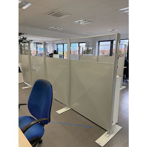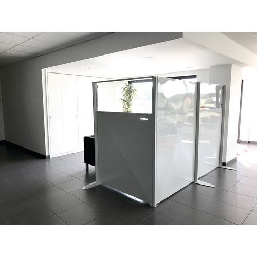 | Produktname | Trennwand zur Hälfte Blech/Plexiglas - Eckmodul, Höhe: 1500 cm, Paneel Farbe: Hellgrau, Breite: 1200 mm |