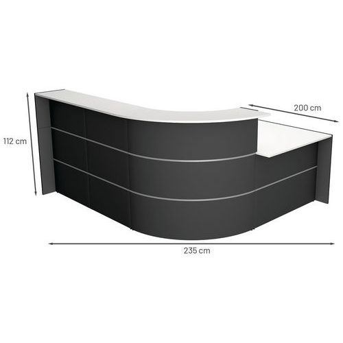 Tresen für den Empfangsbereich mit Modul Bari, Gesamthöhe: 112 cm, Gesamtbreite: 235 cm, Gesamttiefe: 200 cm Tresen für den Empfangsbereich mit Modul Bari, Gesamthöhe: 112 cm, Gesamtbreite: 235 cm, Gesamttiefe: 200 cm