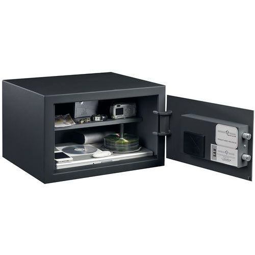 - Diebstahlsicherer, einteiliger Tresor mit 2 Verriegelungszapfen.