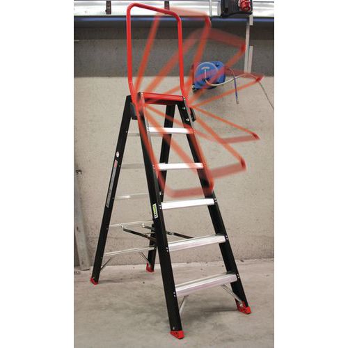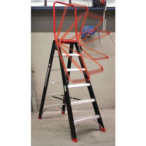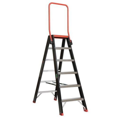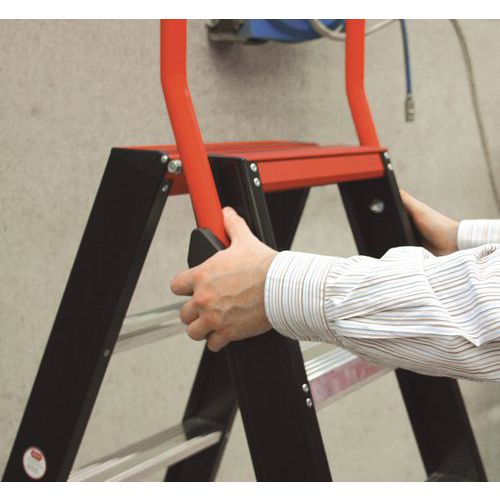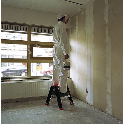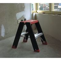 - Trittleiter mit zwei Ebenen und rutschfester Beschichtung.
