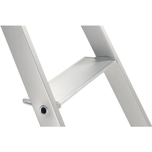 Eloxiertes Gestell für Arbeiten mit sauberen Händen Verstärkte, rutschfeste Fußstütze, 280 x 250 mm, Stufen-Holm-Verbindung mit verdrehsicherem Endstück Aluminiumscharniere auf Polyamidteil (kein Verschleißrisiko) Breitere Trittfläche für bessere Stabilität 90 mm breite Stufen Beschichtete Standfüße Geländer mit Kippsicherung vorne: Höhe 656 mm, hergestellt in Frankreich Kundengarantie : 5 Jahre Max. Belastung (kg) : 150