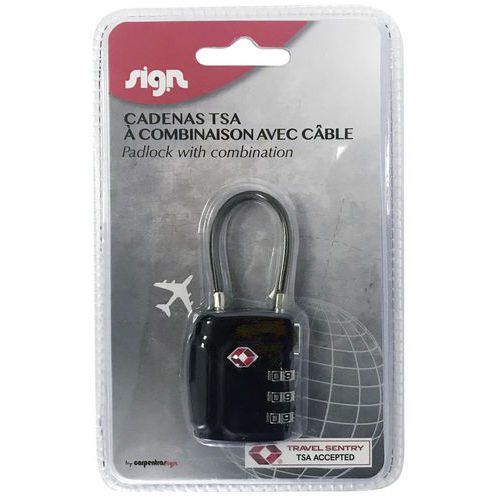 | Produktname | TSA-Kombinationsschloss mit Kabelschlaufe - Sign, Bügel Ø: 88 mm, Anzahl Drehscheiben: 3 |