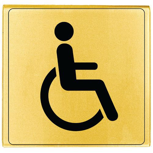 | Produktname | Türschild aus Plexiglas - Behinderten-WC - Gold/Silber - 90 x 90 mm - Novap, Selbstklebend: ja |