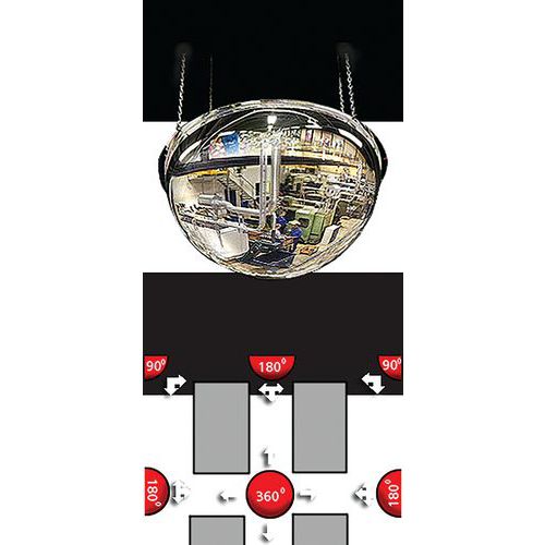 | Produktname | Überwachungsspiegel, kuppelförmig 360° - Dan Mirror, Überwachungsradius: 20 m, Form: Halbkreisförmig |