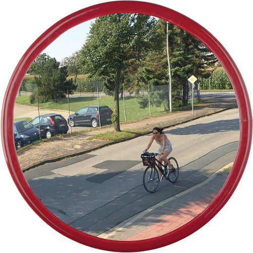 Überwachungsspiegel mit rotem Rahmen für den Außenbereich - Mit Gelenk - Dan Mirror, Überwachungsradius: 22 m