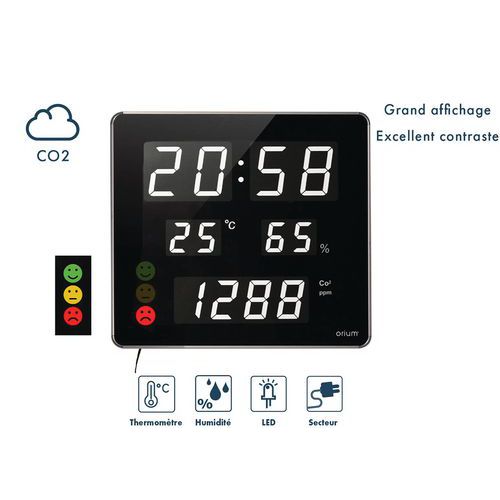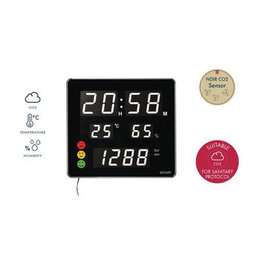 | Produktname | Uhr mit CO2-Messgerät Quaelis 18 - Orium, Breite: 36 cm, Höhe: 40 cm, Speisung: Netz |