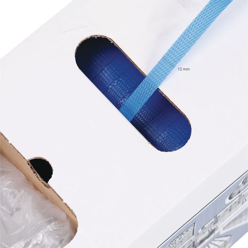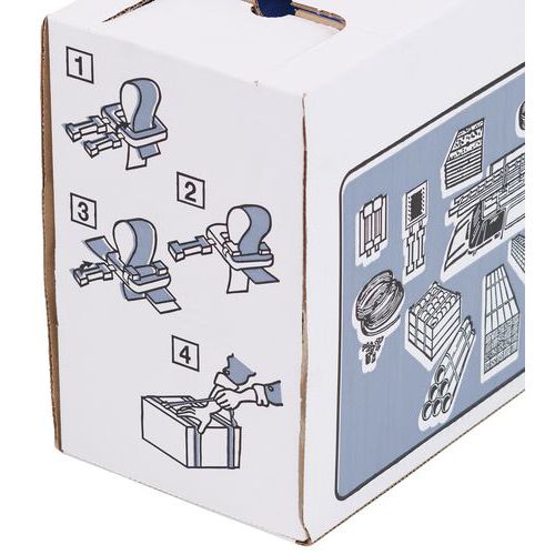 | Produktname | Umreifungsset PP blau - Manutan Expert, Bandlänge: 600 m, Bandbreite: 12 mm, Modell: Spenderbox |