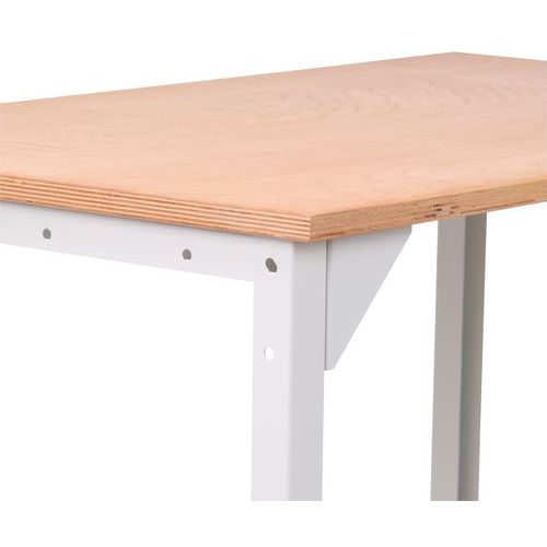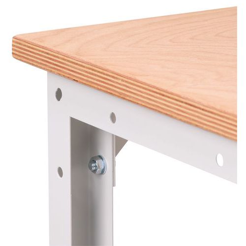 Robuste Werkbank mit Multiplexplatte aus Buche. Belastbar bis max. 100 kg. Einfach zu montierende Werkbank.
