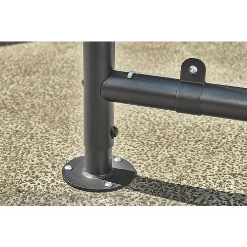 Wichtig: Das Erweiterungsmodul kann nicht alleine aufgestellt werden und muss an den Ständerrahmen des vorhergehenden Moduls befestigt werden (bestehend aus nur 2 Ständerrahmen). Für 6 Fahrräder + 2 Roller/Motorräder oder 9 Fahrräder.