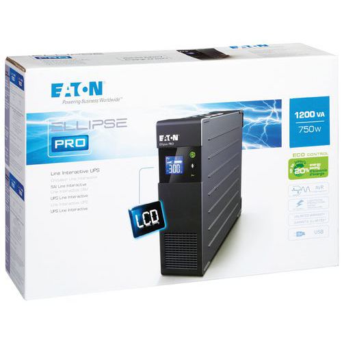 | Produktname | USV Ellipse PRO 1200 FR Eaton, Energie: 750 W, UPS: Line-Interactive, Typ Stecker: 8 frz. Steckdosen (USE) |