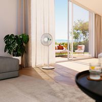 Der Standventilator Finn sorgt dank seiner Oszillationsfunktion und seiner energieeffizienten Technologie für angenehme Frische an heißen Tagen Dank seines abnehmbaren Ständers kann der Ventilator Finn individuell als Boden-, Tisch- oder Standventilator verwendet werden, er ist extrem leise und eignet sich für Schlafzimmer, Kinderzimmer und Büro Der flexible Ventilator schwenkt leise hin und her und sorgt so für eine optimale Luftzirkulation im Raum, und das bis zu einer Entfernung von 8 Metern Die Modi des Ventilators Finn, wie der Modus „Natural Breeze“, der Nachtmodus und der Timer von 1 bis 8 Stunden, lassen sich ganz einfach mit der mitgelieferten Infrarot-Fernbedienung steuern