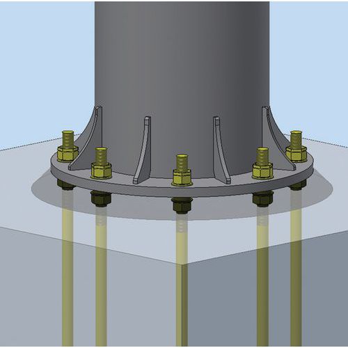 Für die Verankerung eines Säulenschwenkkrans auf einem Betonsockel. Die Verankerungen und den Stahlsockel verwenden.