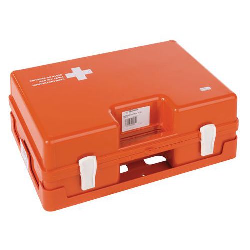 | Produktname | Verbandkasten, Typ A3 für 10 Personen, Farbe: Rot, Gesamtlänge: 44 cm, Gesamtbreite: 33 cm, Gesamthöhe: 15 cm |