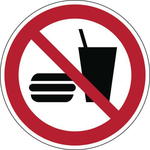 | Produktname | Verbotsschild - Essen und Trinken verboten - steif, Selbstklebend: nein, Starr: ja, Norm ISO 7010: ja |