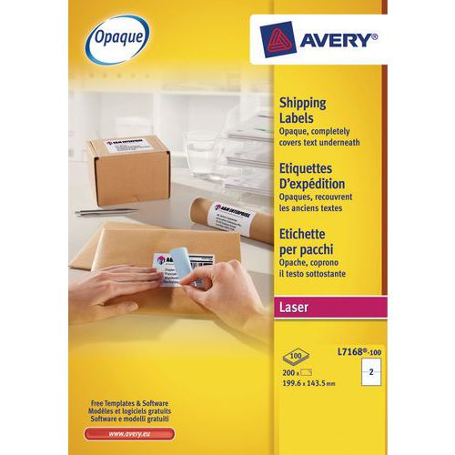 Ideale Etiketten für Pakete oder großformatige Umschläge. Kompatibel mit sämtlichen Marken von Laserdruckern, garantiert staufrei.