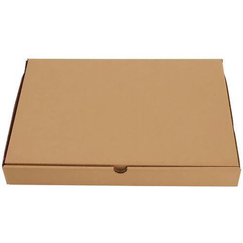Solider Versandkarton aus gelbbraunem Kraftkarton. Die Struktur ist für flache Formate besonders gut geeignet.