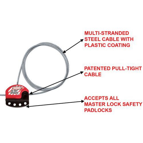 Verstellbare Kabelverriegelungsvorrichtung Master Lock, geeignet für Gruppen- oder Mehrfachverriegelungen