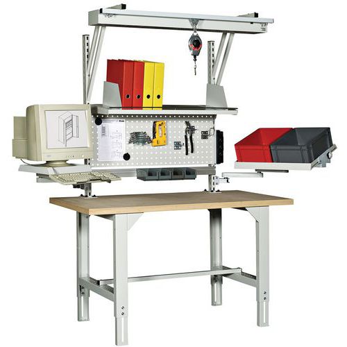 Ergonomische Mehrzweck-Werkbank für die Werkstatt. Stellen Sie mit den verschiedenen Elementen Ihren persönlichen Arbeitsplatz zusammen. Für eine lange Lebensdauer aus Stahlblech gefertigt. Das gelieferte Untergestell ist ein Garant für hohen Komfort und Stabilität.