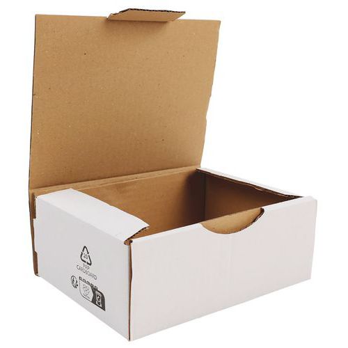 Vielseitig verwendbarer Versandkarton aus Kraftkarton - Mit Lasche - Weiß Vielseitig verwendbarer Versandkarton aus Kraftkarton - Mit Lasche - Weiß