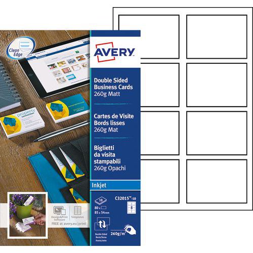 Erstellen Sie schnell und einfach Ihre eigenen Visitenkarten, indem Sie die Software Avery Design & Print Online kostenfrei unter www.avery.de herunterladen.