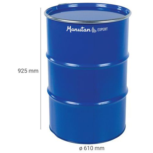| Produktname | Vollständig zu öffnendes, grunderneuertes Fass 216 L - Manutan Expert, Gesamtinhalt: 216 L, Gesamt Ø: 625 mm |