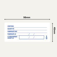 | Produktname | Vorgedrucktes Lebensmittelnachverfolgungsetikett - 98 x 40 mm - Rolle, Anzahl Etiketten: 300 |
