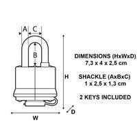 | Produktname | Vorhängeschl. Schlüssel gewalzt. Stahl 312EURD - Master Lock, Farbe: Blau, Längen: 25 mm, Bügel Ø: 10 mm |