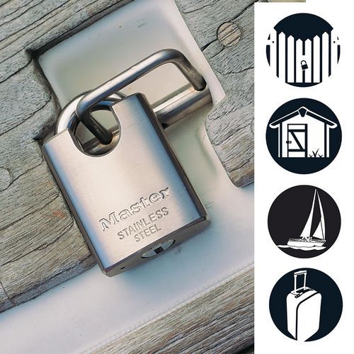 | Produktname | Vorhängeschloss m. Schlüssel Edelstahl 550EURD - Master Lock, Bügel Ø: 10 mm, Anzahl Stifte: 5, Breite: 50 mm |
