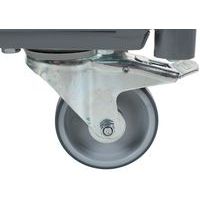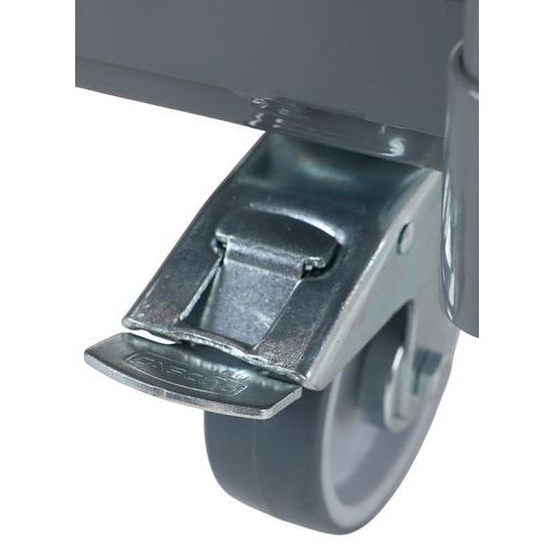 Das Gestell aus geschweißtem Stahl garantiert höchste Stabilität, während die drei Böden eine große Ablagefläche für Ihre Waren bieten Der vertikale Griff bietet eine stabile und ergonomische Handhabung und erleichtert das Schieben und Steuern des Wagens, selbst bei schwerer Beladung Mit seinen vier geräuscharmen Rollen, darunter zwei Lenkrollen mit Feststellern, lässt sich dieser Wagen selbst auf engstem Raum bemerkenswert leichtgängig bewegen Mit den Feststellern können Sie den Wagen sicher arretieren und so unerwünschte Bewegungen beim Be- und Entladen oder bei der Lagerung verhindern
