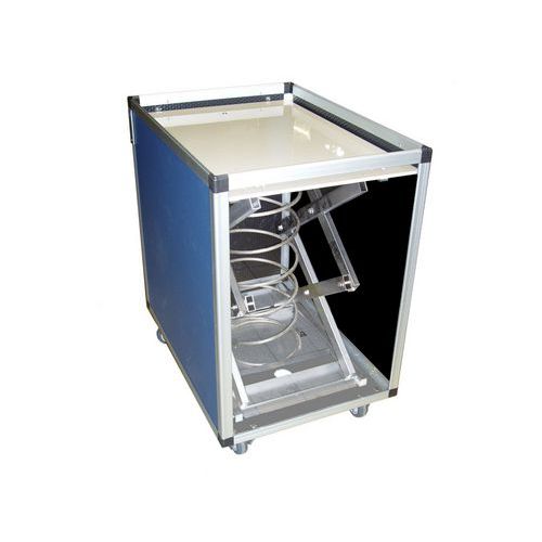 Wagen mit höhenverstellbarem Boden dank gefedertem Pantografsystem Mit einer 8 mm starken Polypropylenplatte verstärkte Rückwand Beständig gegenüber Stößen, Temperaturunterschieden, Wasser sowie den meisten Ölen, Fetten und Chemikalien 100-kg-Modelle mit einem Verstärkungsband aus verzinktem Blech ausgestattet Gummireifen Ø 80 mm, 2 Bockrollen + 2 Lenkrollen mit Feststeller Hergestellt in Frankreich Kundengarantie : 2 Jahre Max. Belastung (kg) : 25