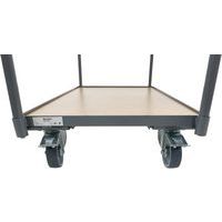 Wagen mit Holzboden mit Rand für Lasten von bis zu 250 kg Die hochwertige Holzplatte, die in zwei Größen erhältlich ist, bietet eine stabile und geräumige Fläche für alle Arten von Paketen, Kartons und Materialien Die 40 mm hohen Ränder sind ein großer Pluspunkt, da sie verhindern, dass Gegenstände während des Transports verrutschen und herunterfallen und somit die Sicherheit Ihrer Waren und Ihrer Mitarbeiter gewährleisten Die 100-mm-Rollen aus thermoplastischem Elastomer-Gummi (TPE) sind geräuscharm und somit ideal für Arbeitsumgebungen, in denen Lärm ein Problem darstellt Absorbiert Vibrationen und sorgt selbst auf unebenen Flächen für einen ruhigeren Transport